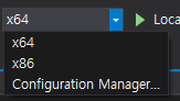 x86은 32비트 환경을 의미한다. x64는 64비트 환경이다. 예전에는 32비트 환경으로 만들어진 프로그램이 많았지만 요즘은 64비트 환경이 더 많으므로 기본으로 x64를 선택하자. 하지만 64비트 환경에서는 개발한 프로그램이 커질 수 있다.