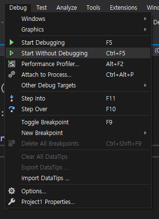 Start without Debugging을 통해 응용 프로그램을 visual studio 내에서 실행할 수 있다. visual studio가 아닌 곳에서 실행할 수 있는 방법 또한 존재한다.