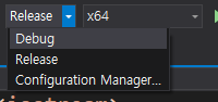 디버그 모드와 릴리즈 모드이다. 차이점은 실행 파일의 크기가 굉장히 많이 차이난다. 디버그 모드의 실행 파일은 디버깅할 때 도움이 될만한 내용이 모두 담겨 있고 릴리즈 모드의 실행 파일은 배포를 위한 파일이기 때문에 최소한의 내용만 담고 있다. 결국 실행 속도의 차이가 발생한다.