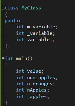 변수명을 짓는 방법은 이전부터 여러가지 방법이 있었는데, 정확한 답은 없다. 한가지 예시를 보자.