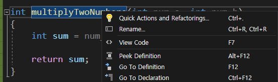 위처럼 함수를 마우스 오른쪽 클릭과 Rename으로 진입하면 함수 자체 이름과 해당 함수를 호출하는 부분에서의 이름까지 한 번에 수정할 수 있다.