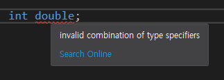 이처럼 이미 예약된 키워드들은 변수명으로 사용할 수 없도록 컴파일 이전부터 에러임을 알려준다.